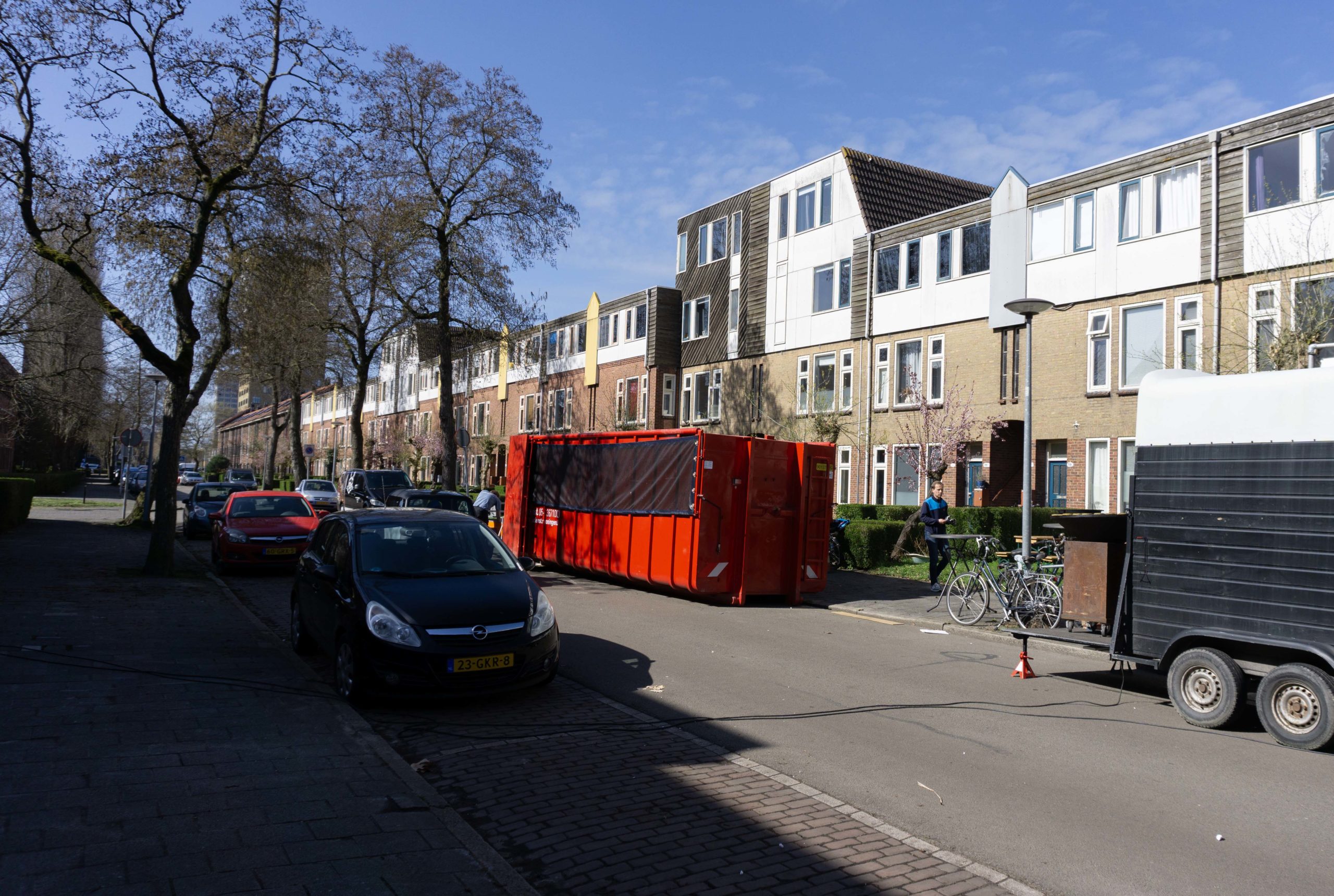In de Vinkenstraat in de Oosterparkwijk in Groningen werd gisteren een container actie georganiseerd door Nijestee, in samenwerking met CareX. Bewoners konden hun grofvuil kwijt en er was hulp aanwezig voor het zware werk, met koffie, falafelburgers en muziek kreeg de dag een ontspannen karakter. Wat vooral opviel: er werd hard gewerkt, maar er was ook ruimte voor een praatje. Bovendien scheen de zon, wat het geheel nog net wat aangenamer maakte.